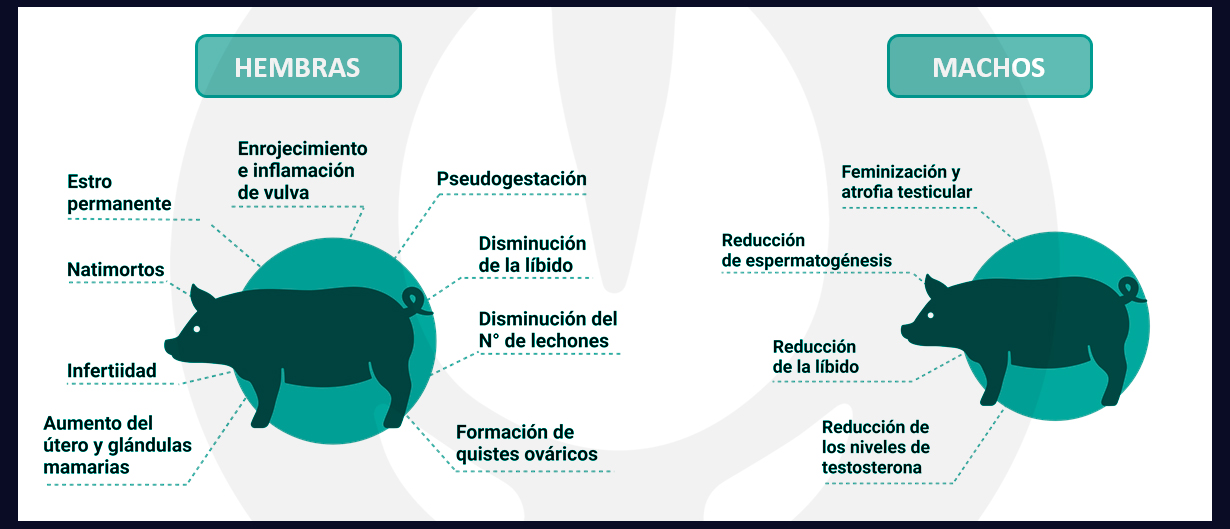 Los cerdos son la especie de animales en producción más sensibles a los efectos de ZEA, esto se debe a que en los cerdos el principal metabolito es el α-ZEA, mientras que en rumiantes y aves predomina el β-ZEA (Buranatragool et al., 2015).