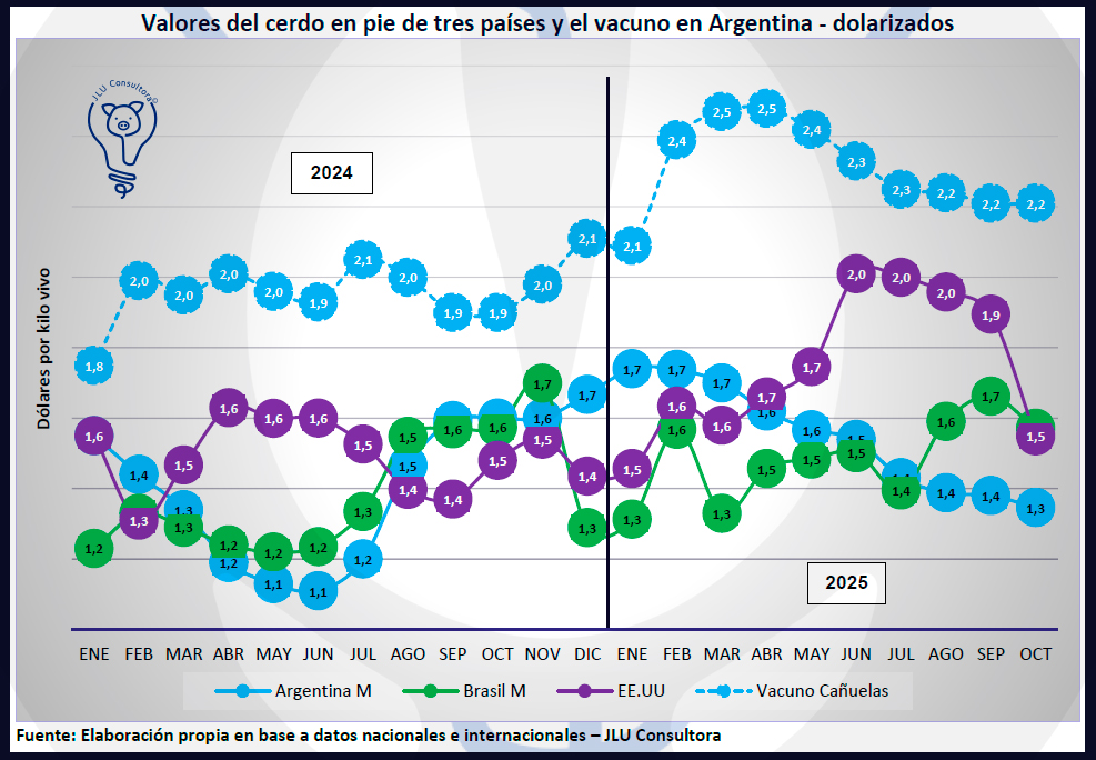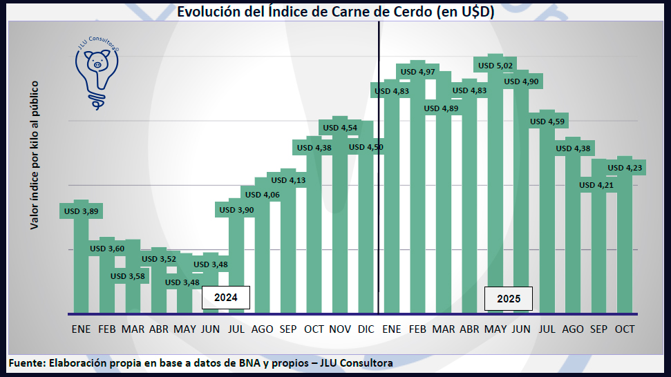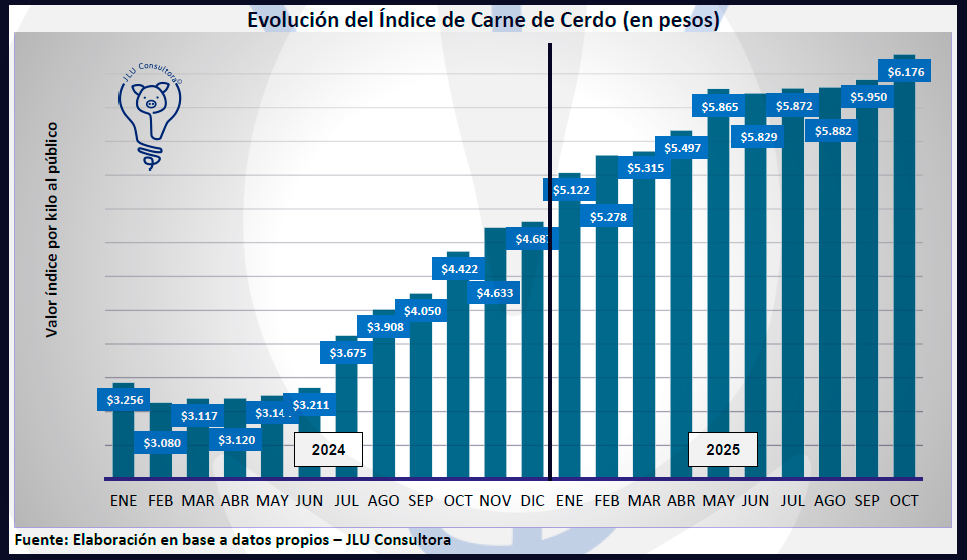 Fuente: "Informe del Sector Porcino Argentino del mes de octubre 2025" - ISP N100A7 | JLU Consultora | Ing. Zoot. Juan Luis Uccelli | consultas@jluconsultora.com